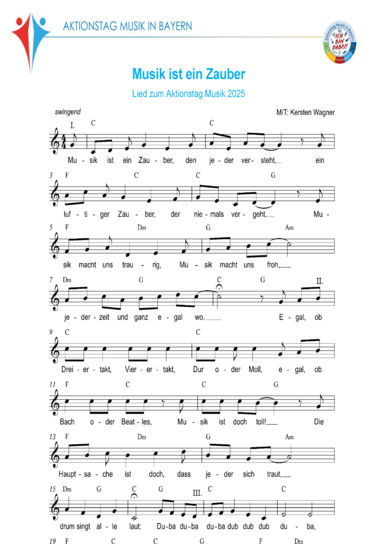 Musik ist ein Zauber - achttaktiger Begleitsatz, passend zu allen Liedteilen