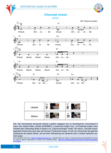 Chocolat chaud - Vorschläge zur Einstudierung als Kanon