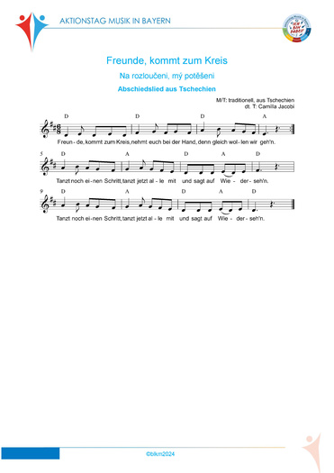 Das Lied "Freunde, kommt zum Kreis" kann zum Abschluss des Schultages, der Schulwoche oder auch zu besonderen Verabschiedungen gesungen und getanzt werden.