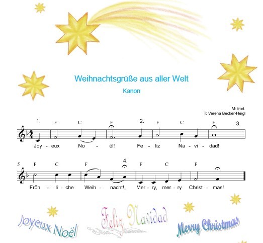 Weihnachtsgrüße aus aller Welt - zum Hineinhören (hier in D-Dur mit Lehrkräften gesungen, mit Kindern besser in F-Dur wie im Liedblatt)
